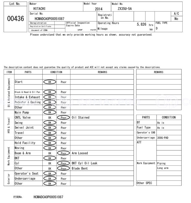 Mini Excavator HITACHI ZX35U-5A – 2014