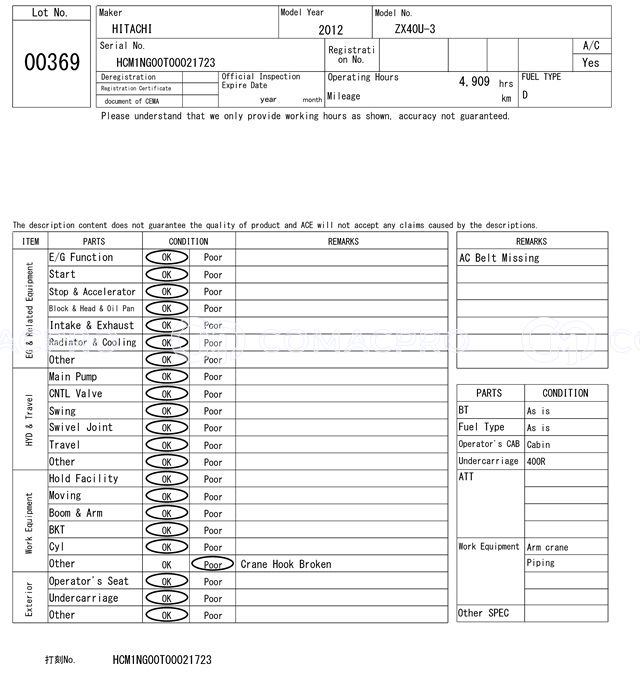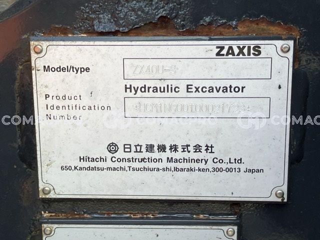Mini Excavator HITACHI ZX40U-3 – 2012