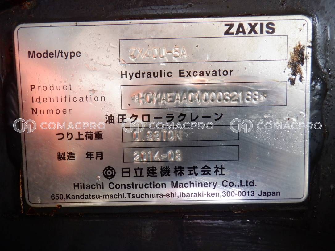 Mini Excavator HITACHI ZX40U-5A – 2014