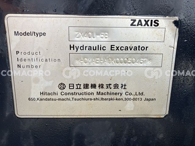 Mini Excavator HITACHI ZX40U-5B – 2016