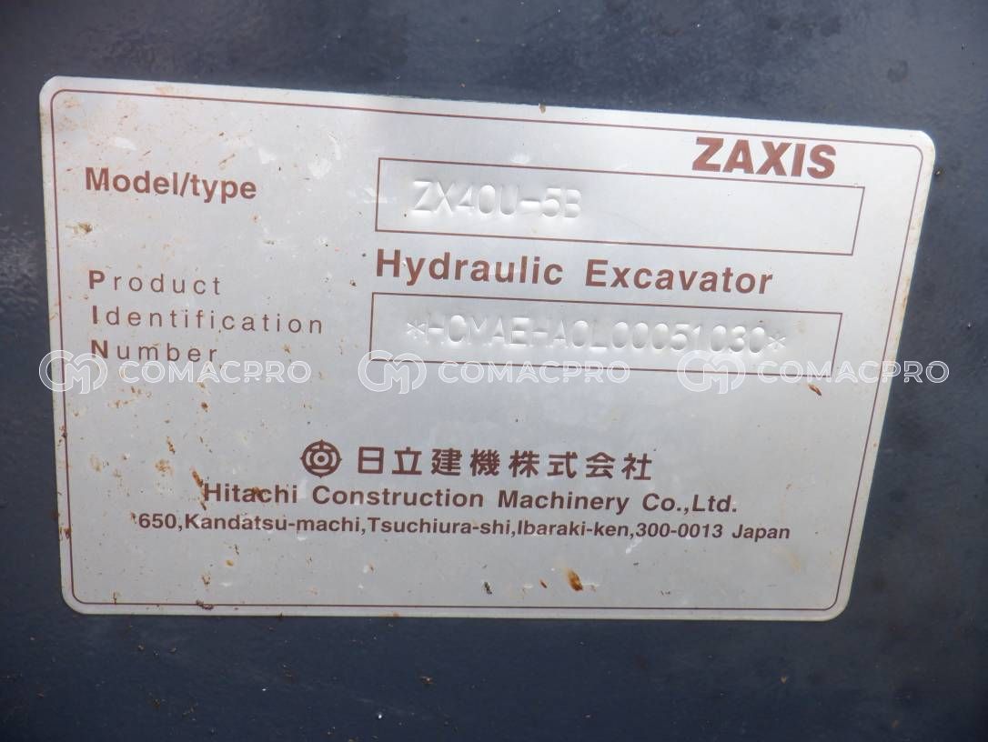 Mini Excavator HITACHI ZX40U-5B – 2017