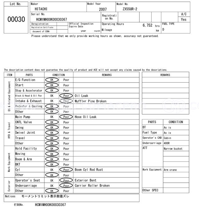 Mini Excavator HITACHI ZX55UR-2 – 2007