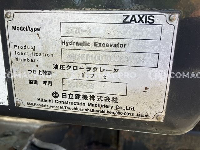 Mini Excavator HITACHI ZX70-3 – 2012
