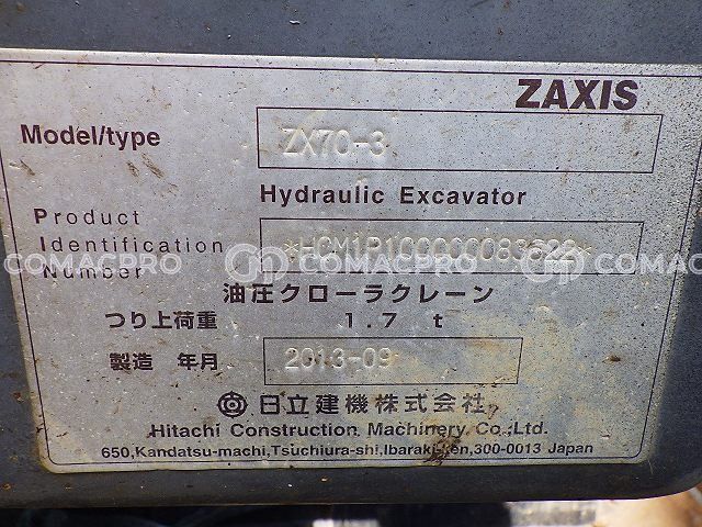 Mini Excavator HITACHI ZX70-3 – 2013