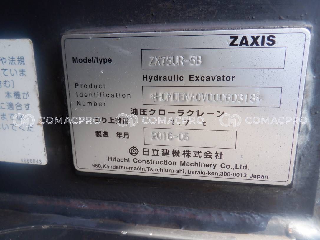 Mini Excavator HITACHI ZX75UR-5B – 2016