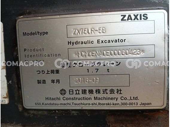 Mini Excavator HITACHI ZX75UR-5B – 2016