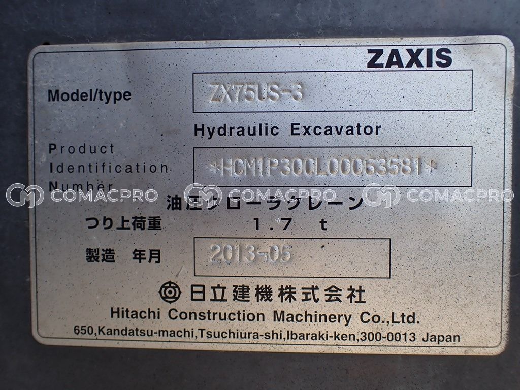 Mini Excavator HITACHI ZX75US-3 – 2013