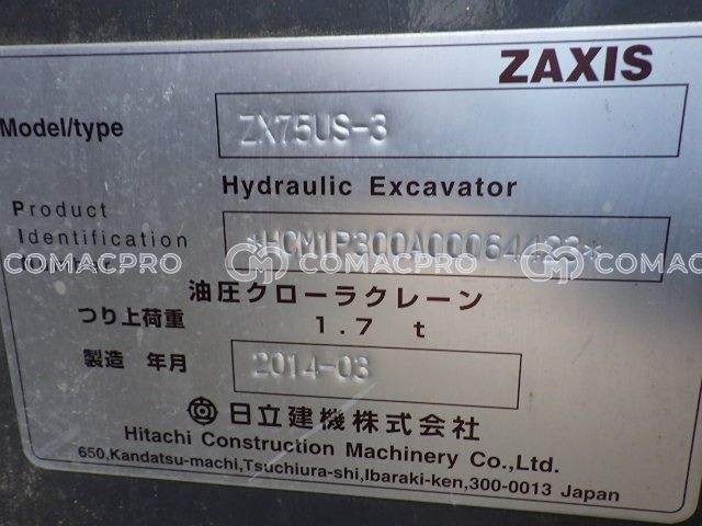 Mini Excavator HITACHI ZX75US-3 – 2014