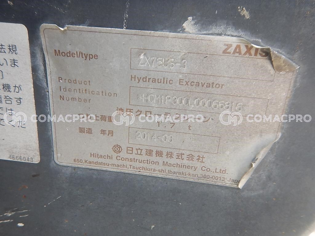 Mini Excavator HITACHI ZX75US-3 – 2014