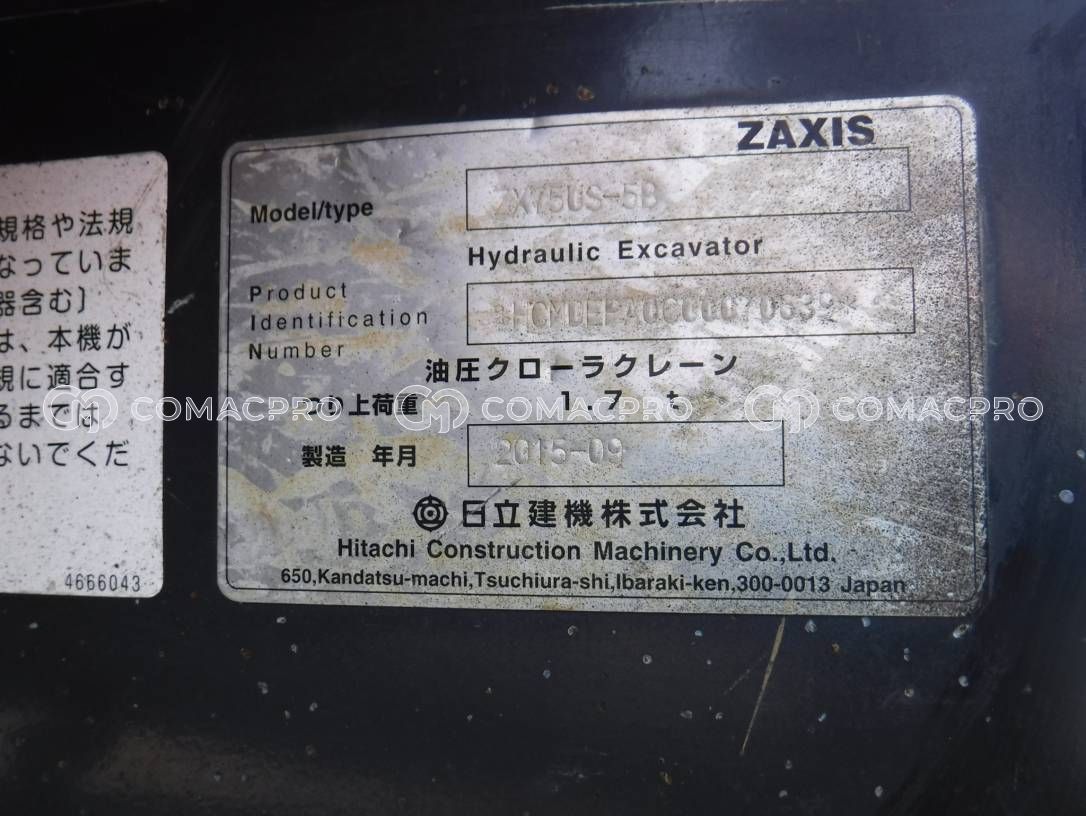Mini Excavator HITACHI ZX75US-5B – 2015