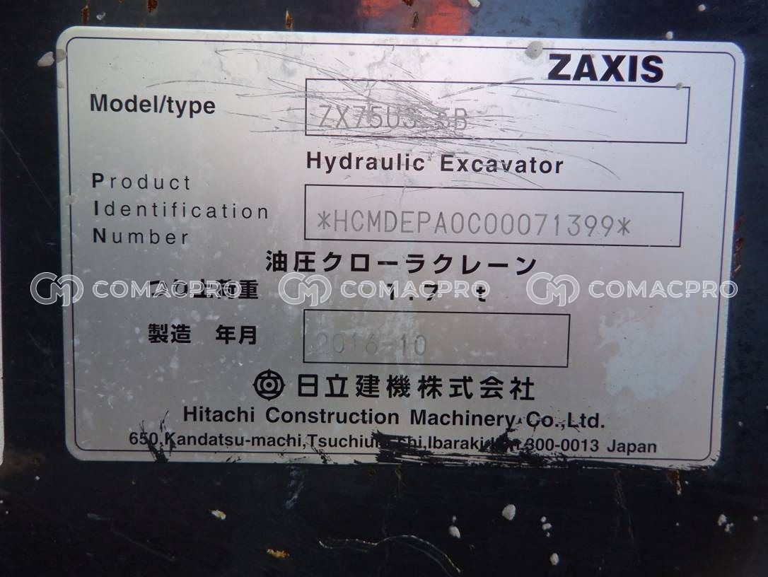 Mini Excavator HITACHI ZX75US-5B – 2016