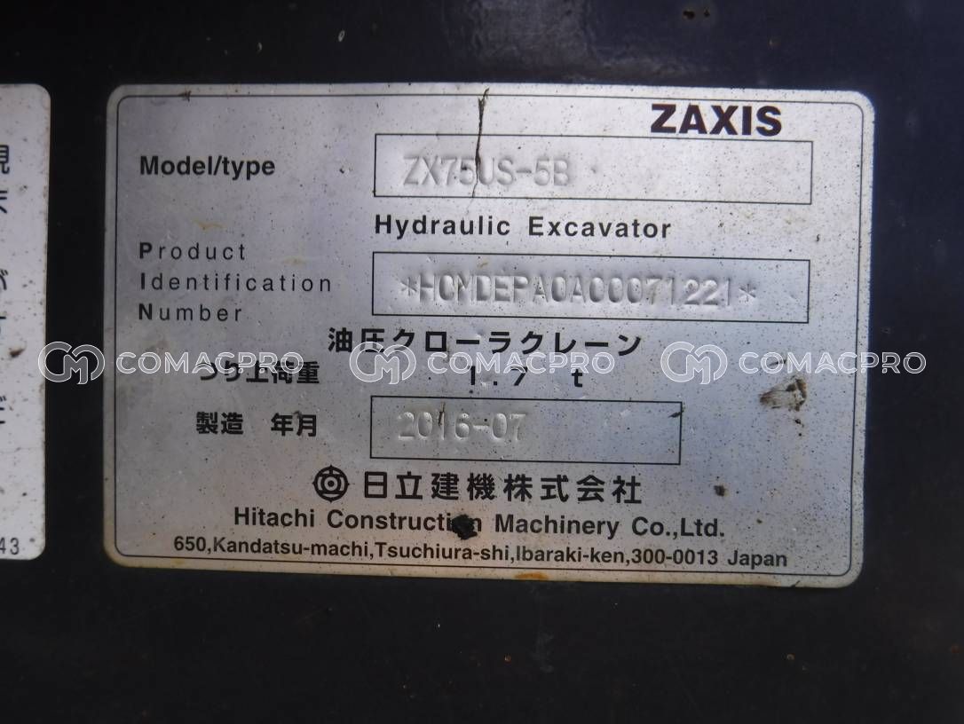 Mini Excavator HITACHI ZX75US-5B – 2016