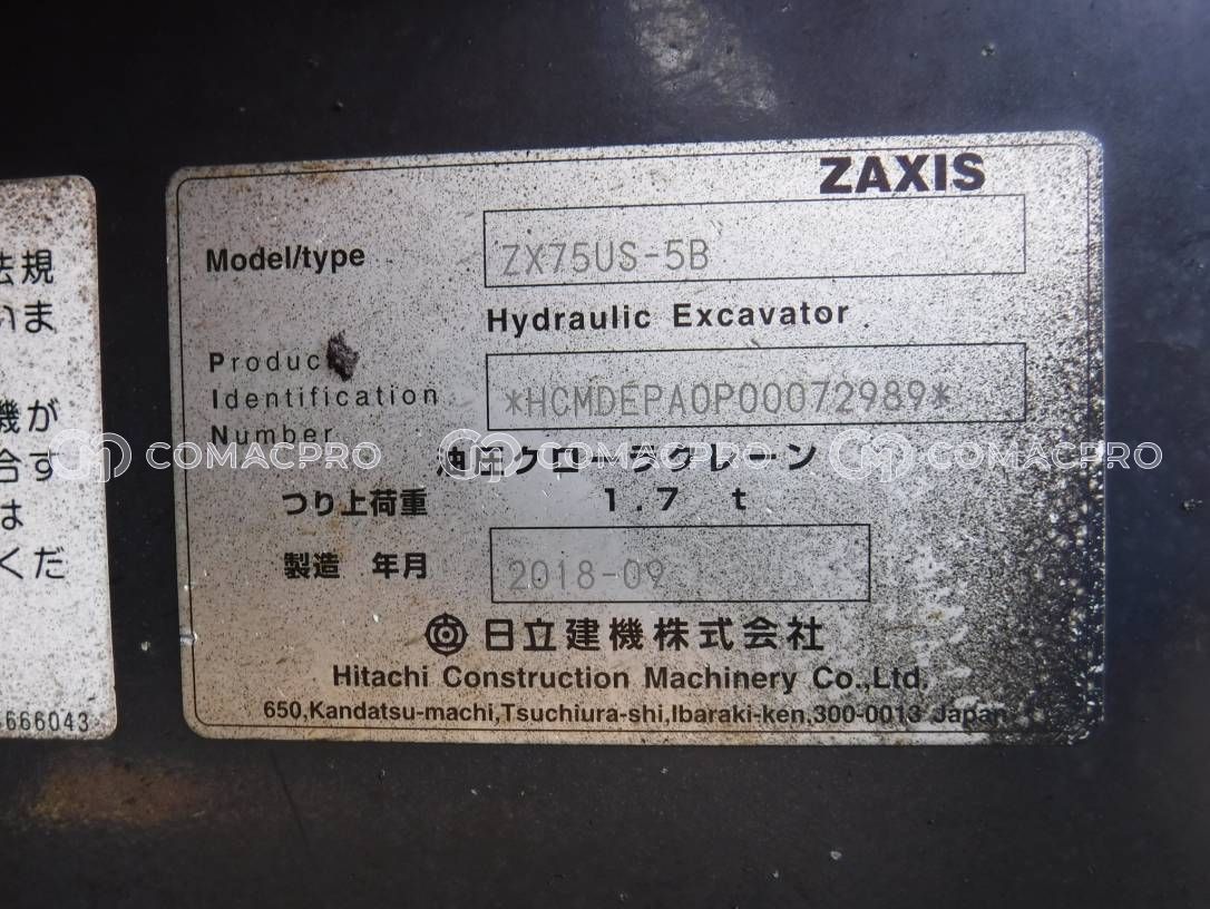Mini Excavator HITACHI ZX75US-5B – 2018