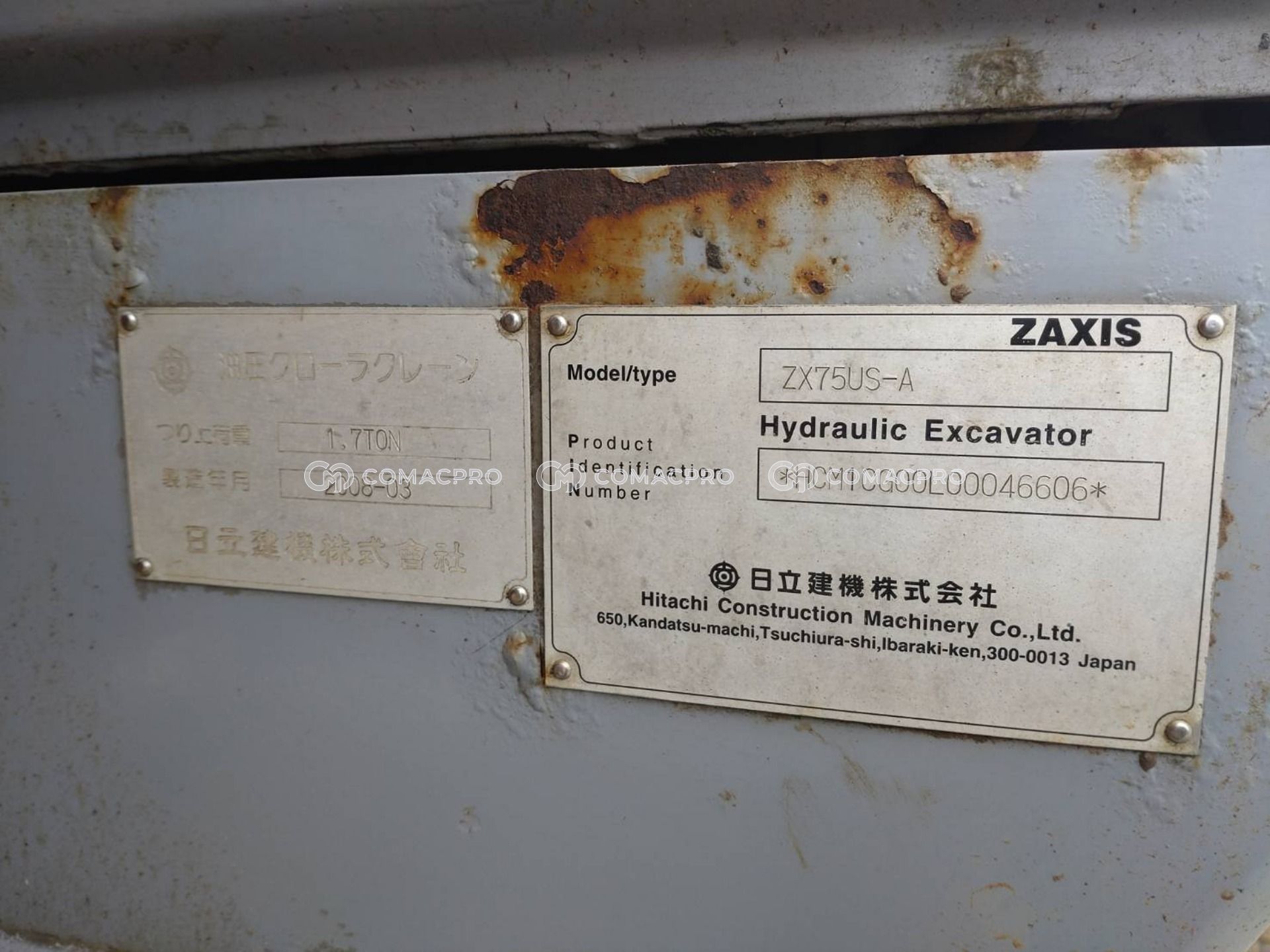 Mini Excavator HITACHI ZX75US-A – 2008