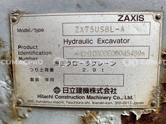 Mini Excavator HITACHI ZX75USBL-A – 2007