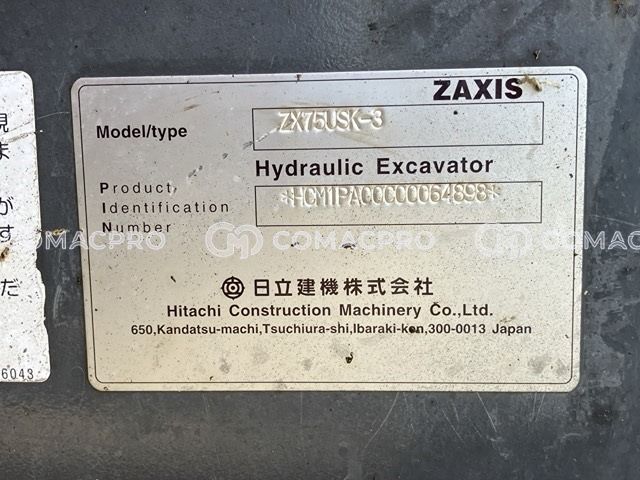 Mini Excavator HITACHI ZX75USK-3 – 2014