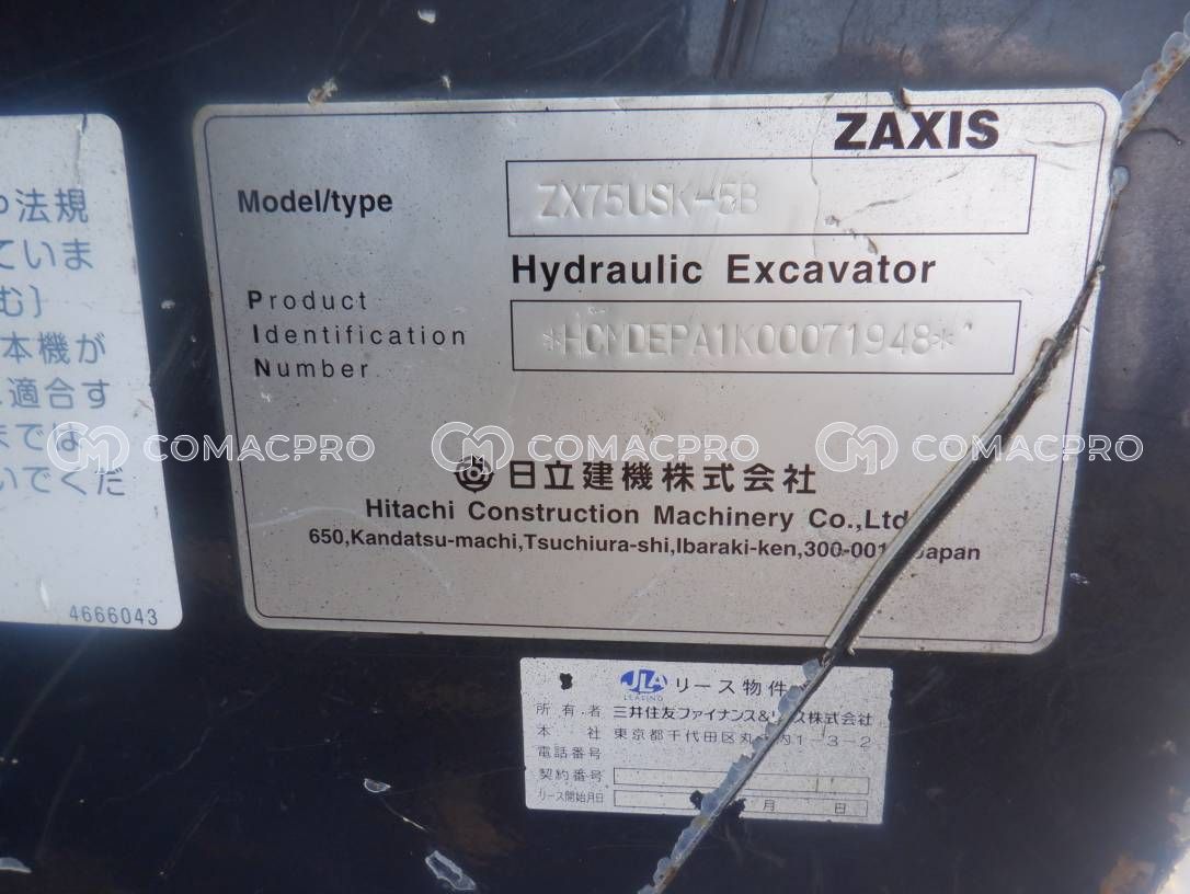 Mini Excavator HITACHI ZX75USK-5B – 2017