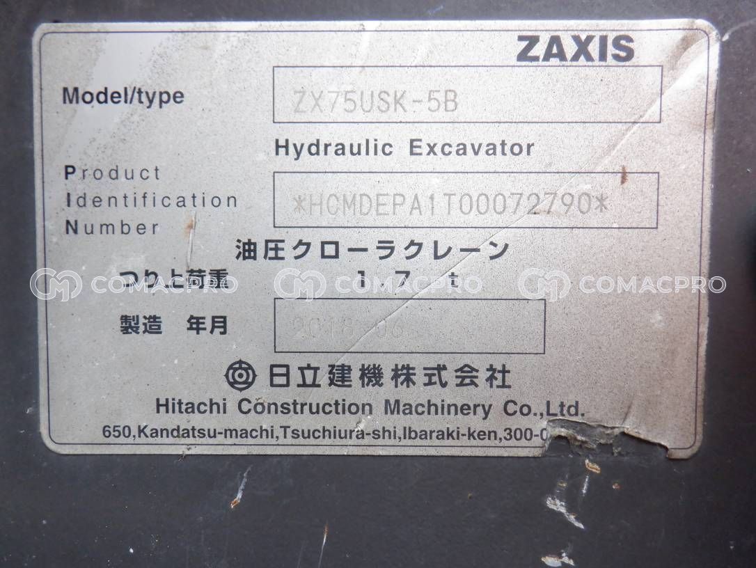 Mini Excavator HITACHI ZX75USK-5B – 2018