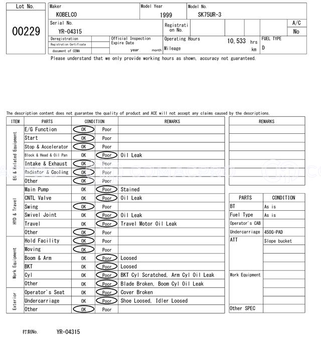 Mini Excavator KOBELCO SK75UR-3 – 1999