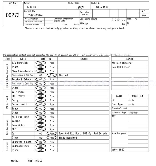 Mini Excavator KOBELCO SK75UR-3E – 2003