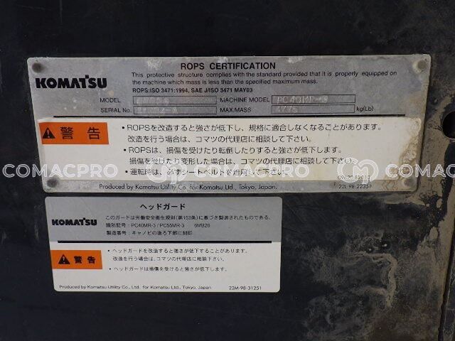 Mini Excavator KOMATSU PC40MR-3 – 2011