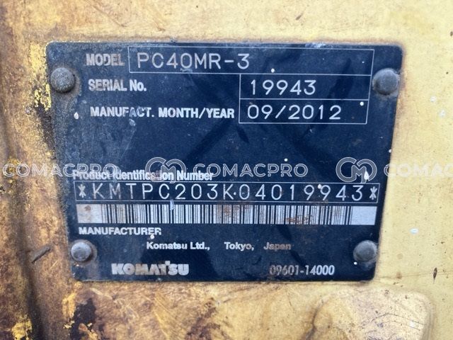 Mini Excavator KOMATSU PC40MR-3 – 2012