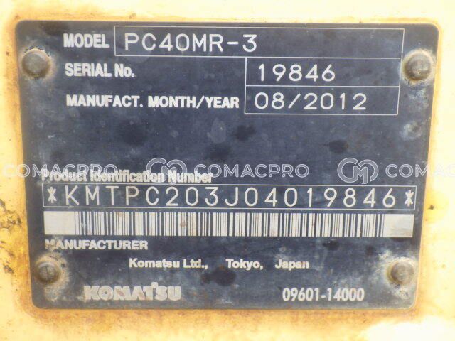 Mini Excavator KOMATSU PC40MR-3 – 2012