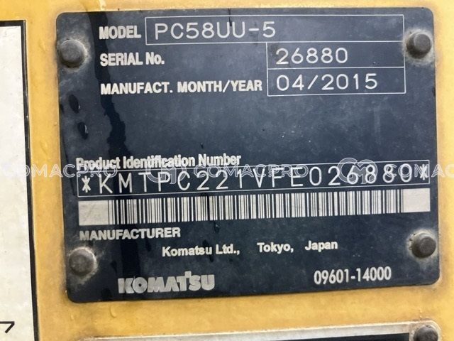 Mini Excavator KOMATSU PC58UU-5 – 2015