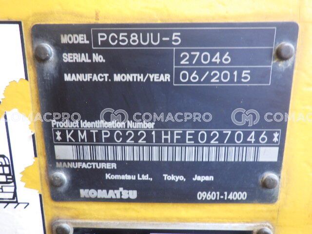 Mini Excavator KOMATSU PC58UU-5 – 2015
