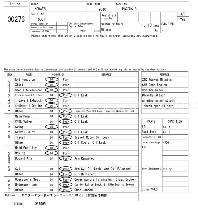 Mini Excavator KOMATSU PC78UU-8 – 2011