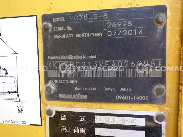 Mini Excavator KOMATSU PC78US-8 – 2014