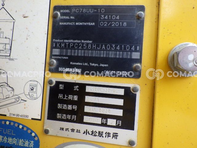 Mini Excavator KOMATSU PC78UU-10 – 2018