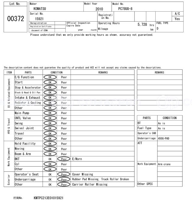 Mini Excavator KOMATSU PC78US-6N0 – 2006