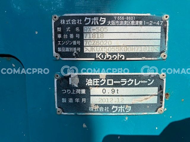 Mini Excavator KUBOTA RX-505 – 2012