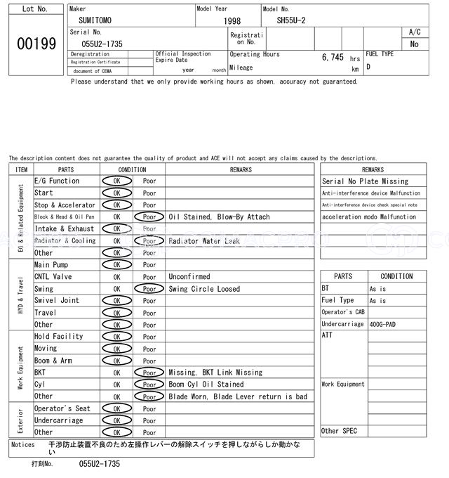 Mini Excavator SUMITOMO SH55U-2 – 1998