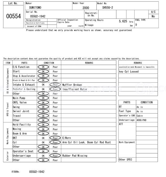 Mini Excavator SUMITOMO SH55U-2 – 2000