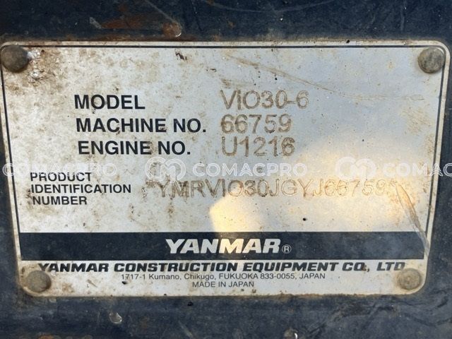 Mini Excavator YANMAR VIO30-6 – 2016