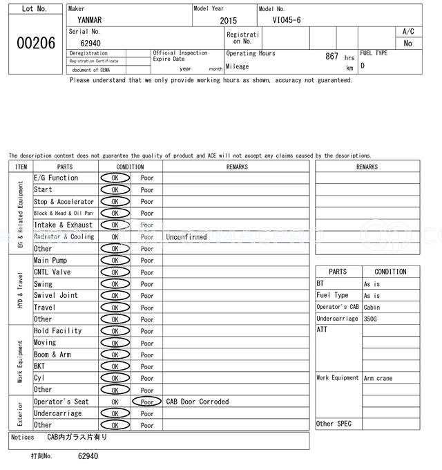 Mini Excavator YANMAR VIO45-6 – 2015