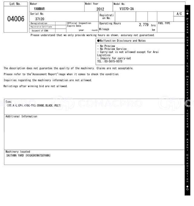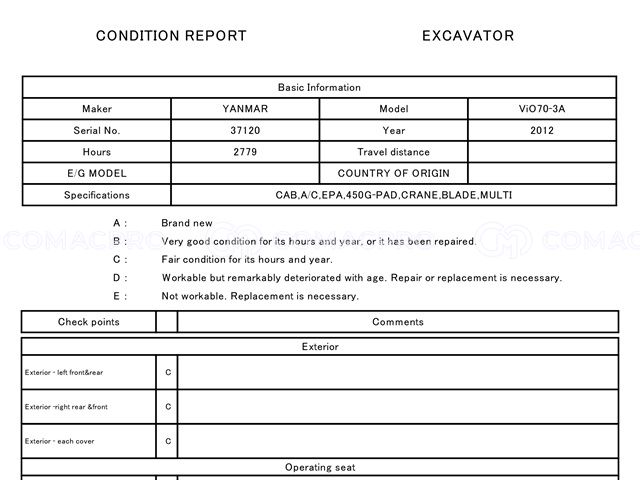 Mini Excavator YANMAR VIO70-3A – 2012
