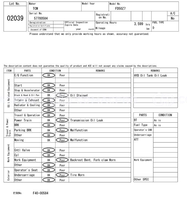 Diesel Forklift TCM FD50Z7