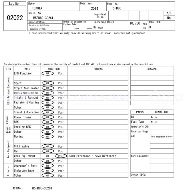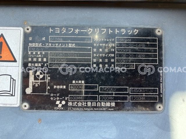 Diesel Forklift TOYOTA 5FD80 – 2014